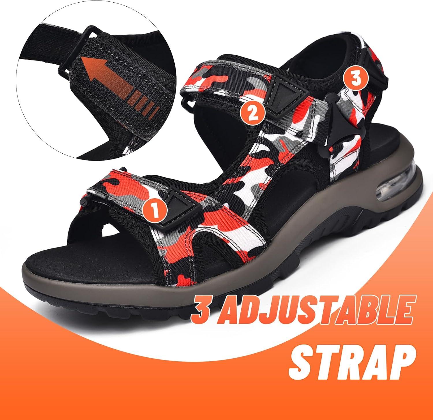 outdoor summer open toe lightweight comfort fisherman athletic walking sport air cushion casual travel beach comfy hiking non slip waterproof velcro strap wide leather water sandals shoes for men size 6 7 8 8.5 9 9.5 10 10.5 11 11.5 12