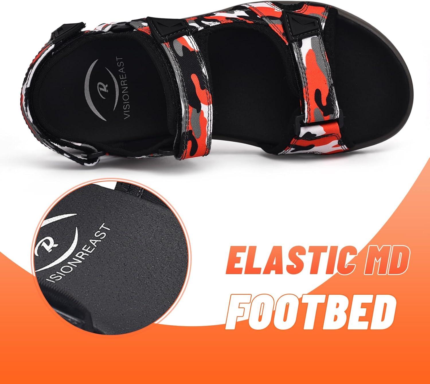visionreast Mens Athletic Sandals Open Toe Hiking Outdoor Non-slip Sandals Air Cushion Sport Casual Beach Sandals(E_white and Red)